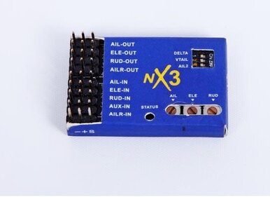 Tří-osé gyro pro plošníky. Vhodné pro letadla s křidélky řízenými jedním servem, dvěma servy (Flaperony), s motýlkovými ocasními plochami (V-tail) nebo samokřídla (Delta).
